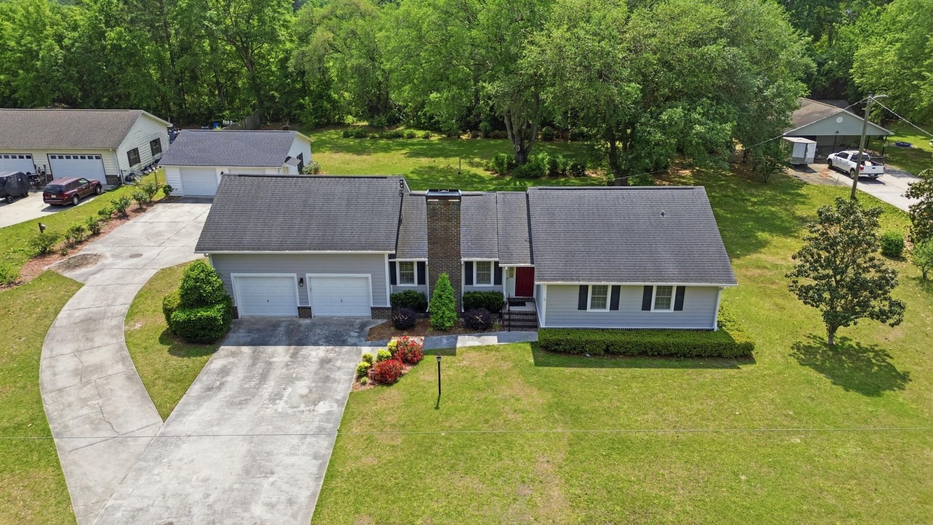 Experience true Lowcountry living on one full acre at this beautifully reimagined Summerville residence with NO HOA. Thoughtfully remodeled this home blends modern luxury with the serenity of a private, park-like setting. Inside, you'll find a designer-inspired kitchen with granite countertops, fully updated bathrooms, and new LVP flooring that creates a seamless, elevated feel throughout. The home offers 3 bedrooms and 2 bathrooms, along with a spacious finished room over the garage providing the perfect opportunity for a future guest suite, studio, or private retreat. A tankless water heater adds efficiency and comfort to the home's upgraded systems. Home has natural gas for tankless water heater, heat pump and gas logs for fireplace.Car collectors, hobbyists, and those seeking exceptional storage will appreciate the oversized attached 2-car garage paired with an oversized detached 2-car garage featuring a window unit, ideal for a workshop or climate-controlled workspace.Outdoors, the property continues to impress with a large covered patio, perfect for year-round entertaining, morning coffee, or quiet evenings overlooking the expansive, tree-lined yard. Surrounded by mature trees and wide-open green space, this home offers rare privacy while remaining close to Cane Bay, shopping, dining, and everyday conveniences.A truly exceptional opportunity to own a fully updated home on acreage--where luxury, comfort, and space come together effortlessly.The sellers have thoughtfully elevated this home with a series of high-quality renovations and system upgrades. The kitchen and primary bathroom were beautifully remodeled, complemented by a tankless water heater and PEX plumbing replacement in 2019 for long-term efficiency and peace of mind. In 2026, the owners continued enhancing the home with a fully remodeled hall bathroom, luxury LVP flooring throughout, a new mini-split in the bonus room, and fresh interior paint for a modern, cohesive aesthetic. The crawlspace received a new dehumidifier and upgraded moisture barrier, ensuring exceptional home health and durability.A truly stunning property with thoughtful upgrades at every turn -- a must-see for buyers seeking quality and style.